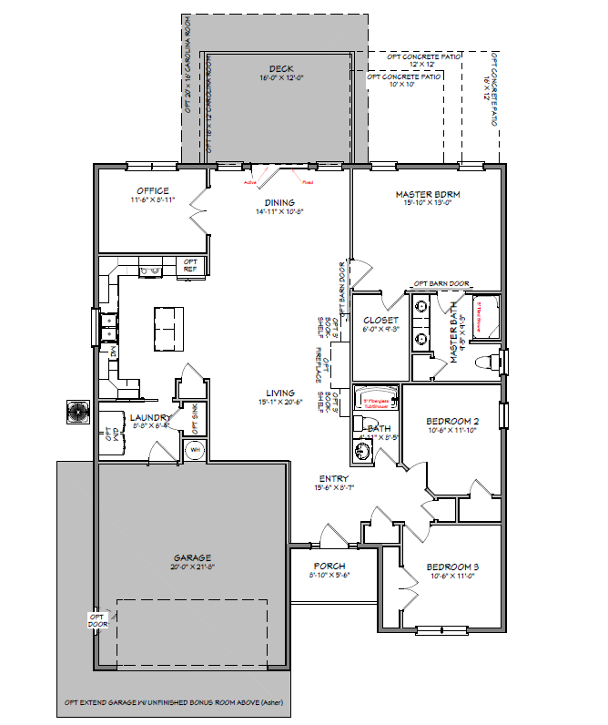 - Option to expand garage to allow addition of bonus room above garage